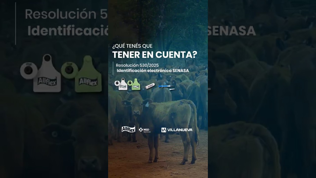 • La Resolución 530/2025 de SENASA oficializa el sistema de identificación electrónica para bovinos bubalinos y cérvidos a partir de 1 de enero 2026 • Terneros y terneras de bovinos, bubalinos o cérvidos deben ser caravaneados al momento del destete o antes del primer movimiento • Los dispositivos con los que cuenta Allflex son: caravana electrónica más tarjeta visual - bolo intraluminal más tarjeta visual. • El responsable de la identificación y colocación de los dispositivos es el productor. • La medida no es retroactiva, y solo aplica a los animales que no hayan sido caravaneados al 31 de diciembre de 2025 • Respecto a la distribución y adquisición de los dispositivos se va a realizar a través de los canales habituales (veterinarias – distribuidores de insumos ganaderos – agronomías)